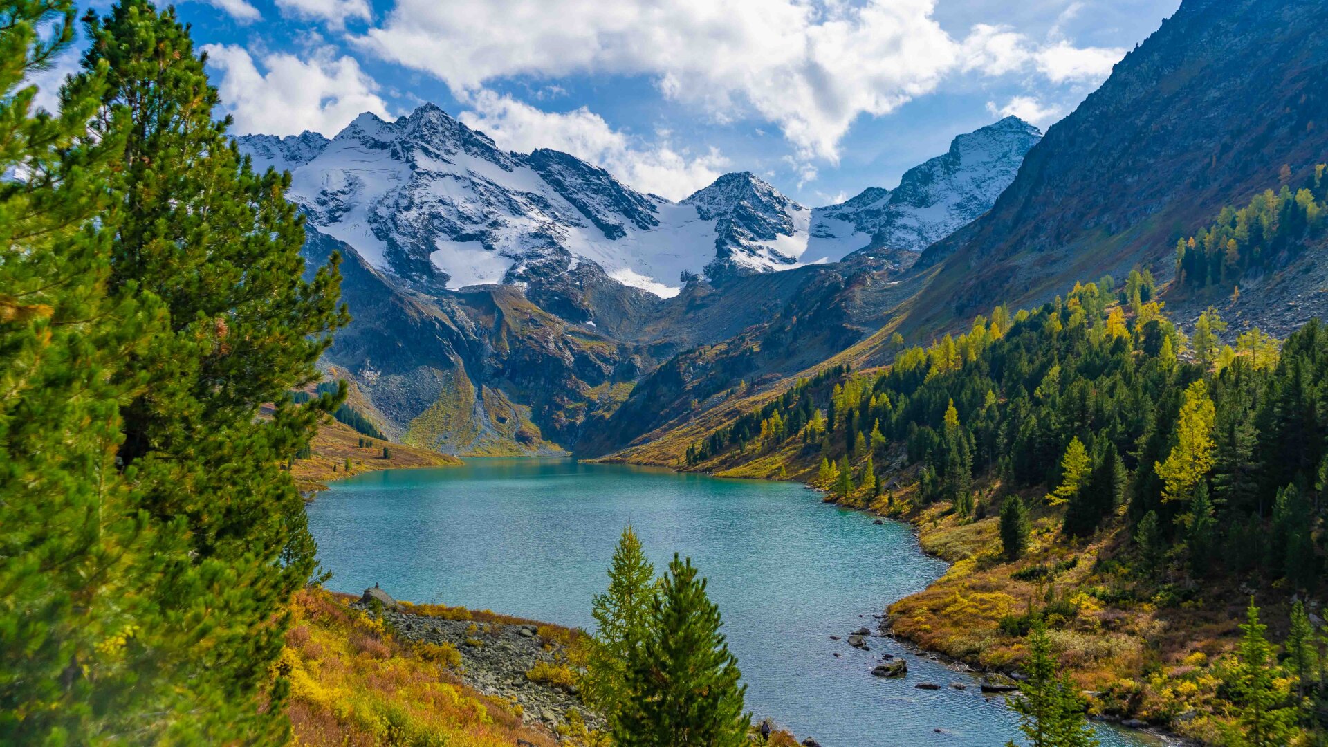 Это путешествие отличная возможность увидеть те самые бирюзовые озера в горах Алтая со снежными вершинами даже летом!